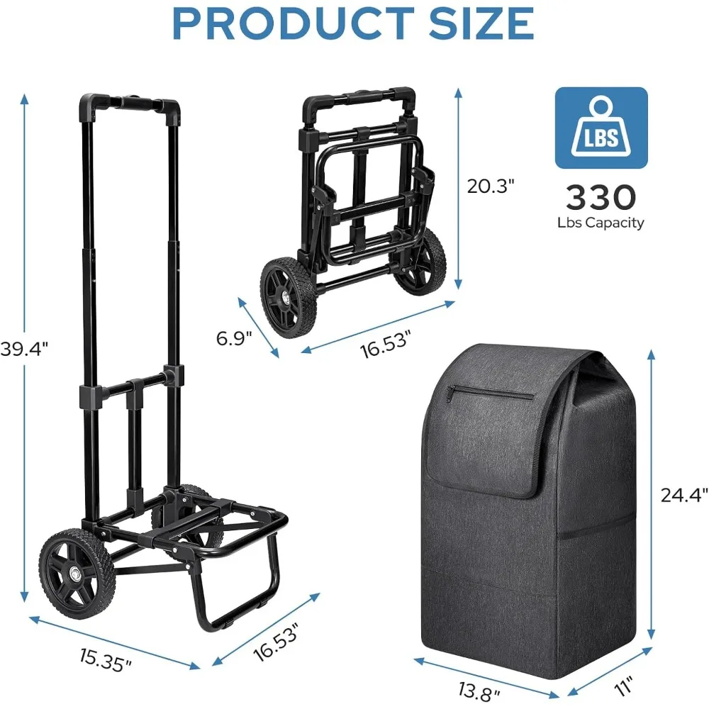 2 in 1 shopping cart for groceries, 330 lb cart wheels, folding cart, load bearing cart shopping in black waterproof bags