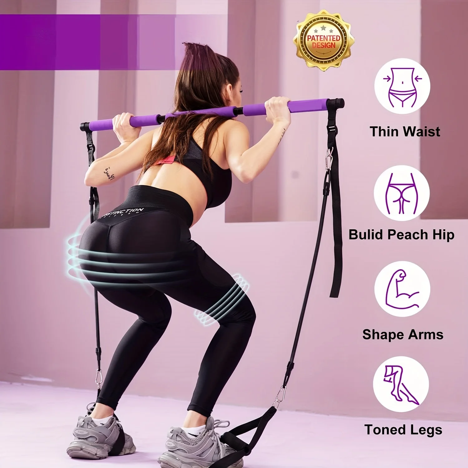 【The Ultimate Pilates Bar Kit】 all-in-one home workout machine enables a full-body workout and can be easily customized at beginner to advanced intensity levels.     Equipped with 4 durable resistance bands (120LBS) to meet the intensity of training.     Its unique structure allows it to be turned into a high-strength and safe fitness machine.     Maximize the results of your workout.